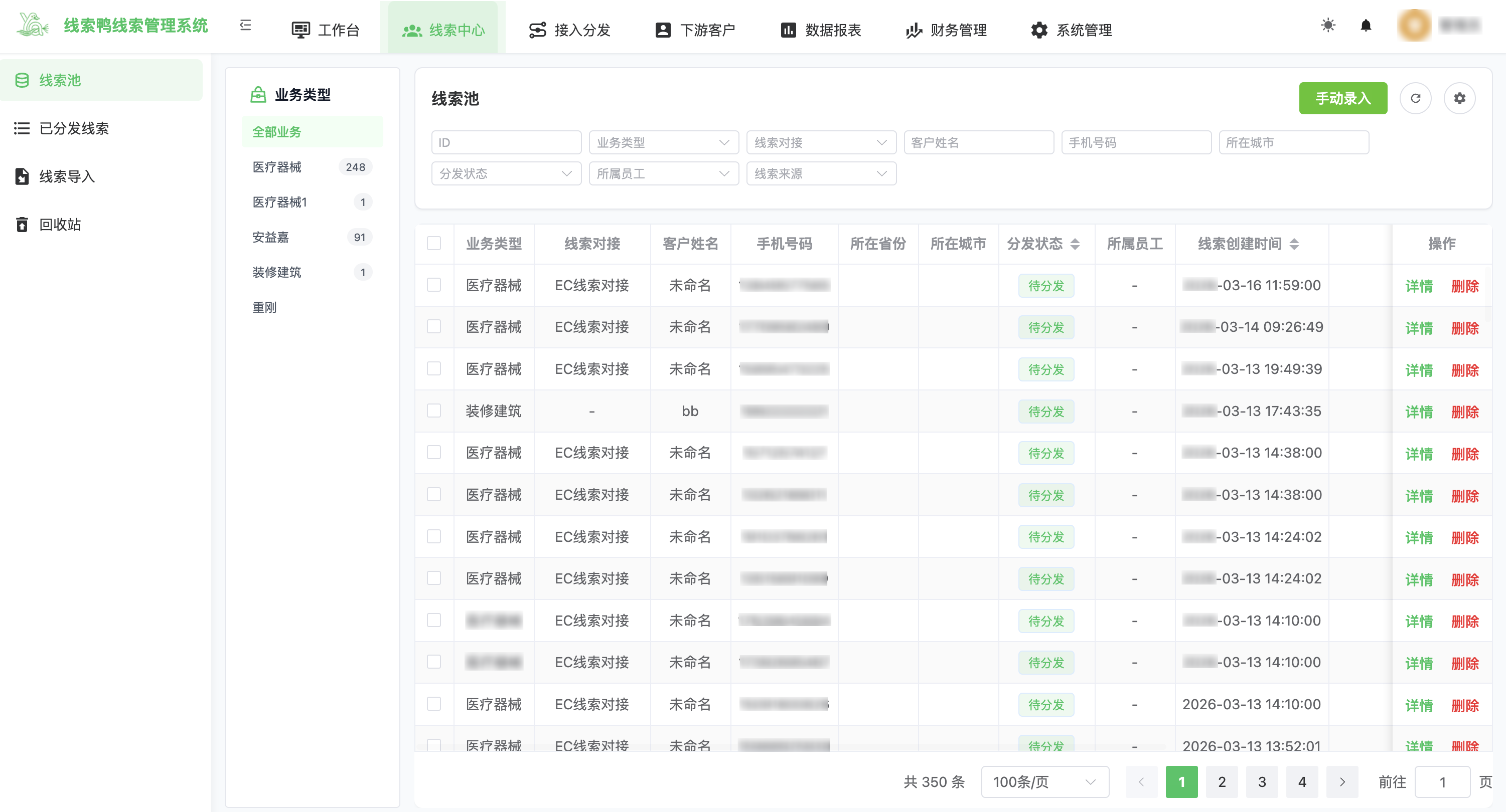 线索池 (待分发)